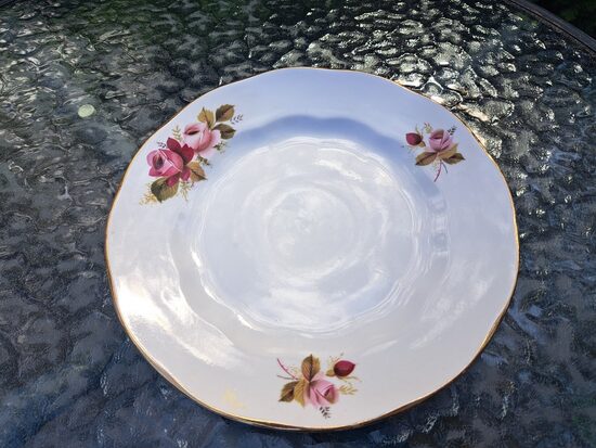 Otrā ēdiena šķīvis no pusdienu servīzes "Ārija" ar bešā rozēm un zeltu, RPR. D=24cm (Ārija pusdienu 439)